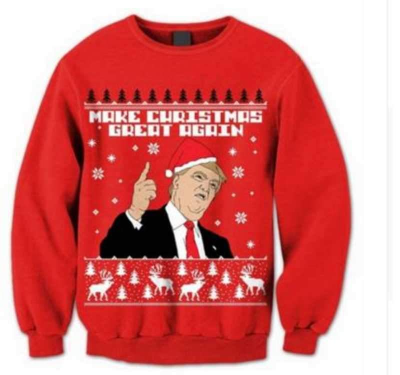 Funny Christmas sweater featuring Donald Trump in the lead role. Make Christmas Great Again!