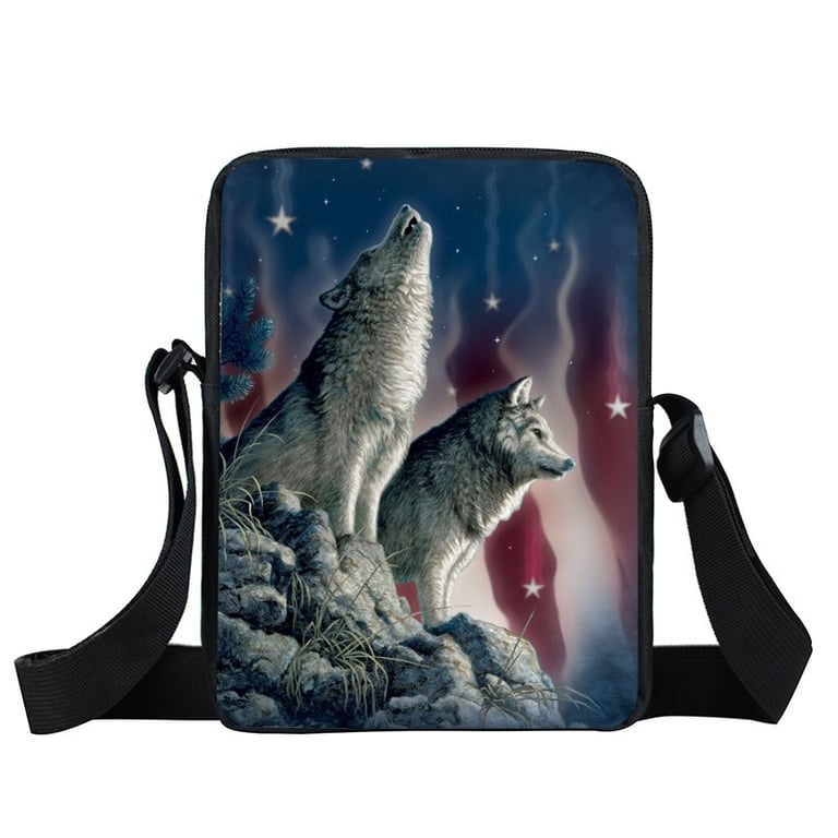 Unisex handbag with an original wolf print