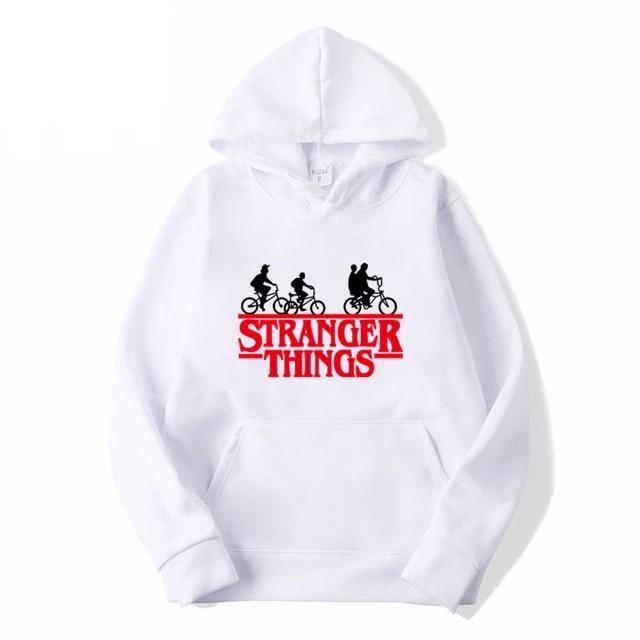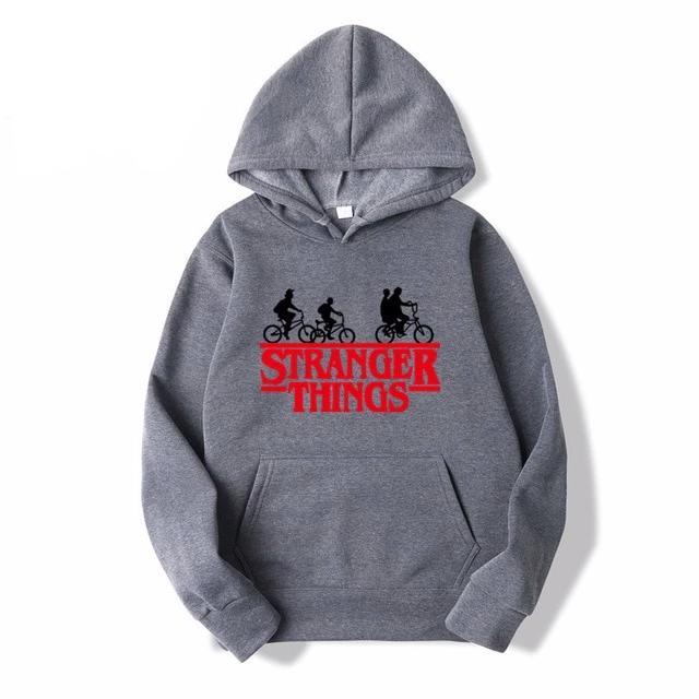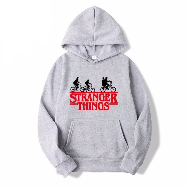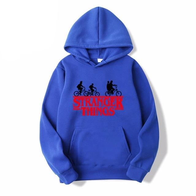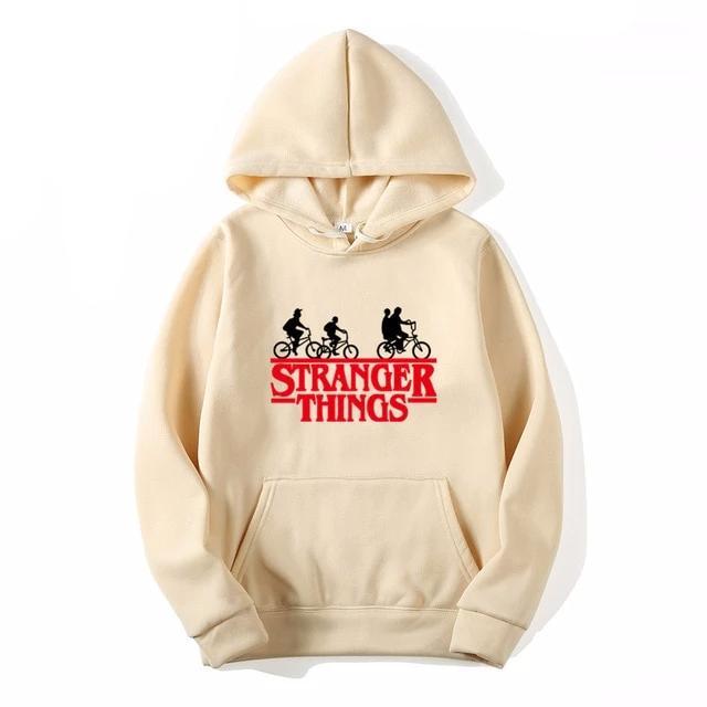 The warming hoodie with a spacious kangaroo pocket beautifully warms thanks to the fleece material on the inside. The hoodie features a design from the popular series Stranger Things.