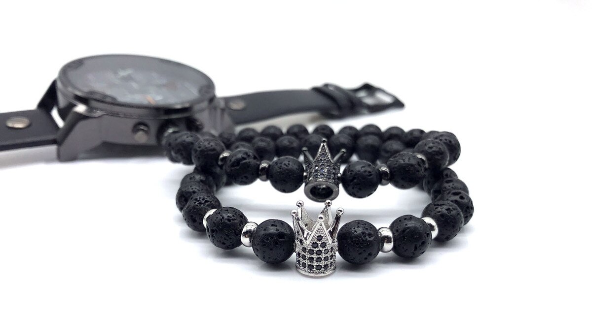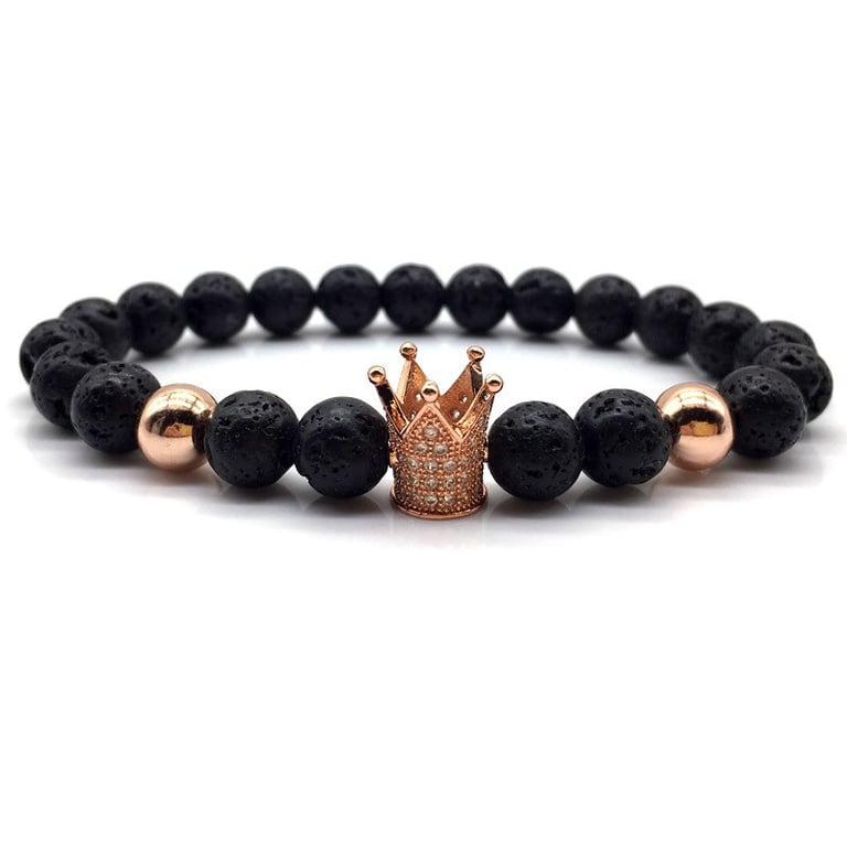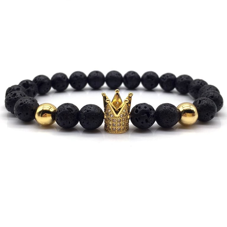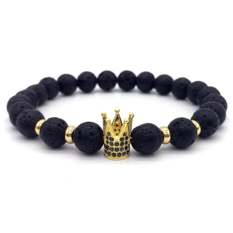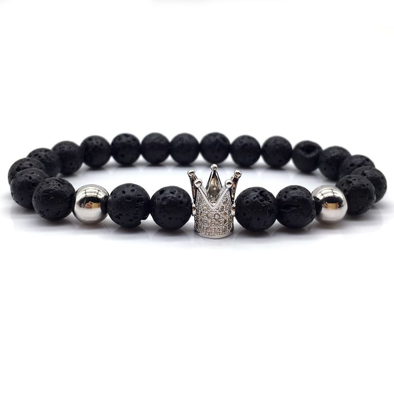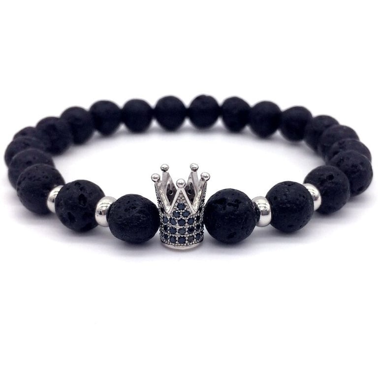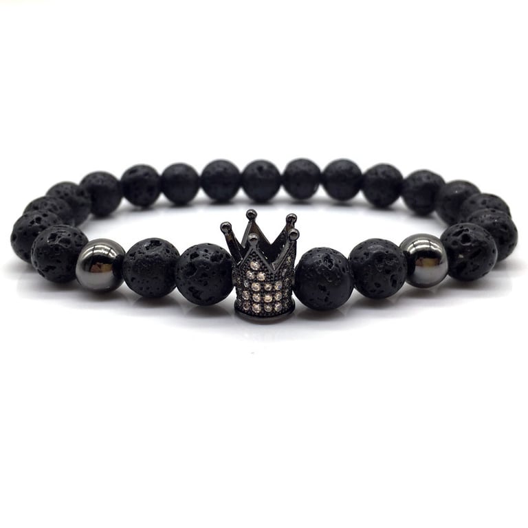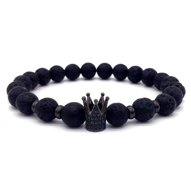 Unisex lava stone bracelet with a crown. Unisex lava stone bracelet with a crown.