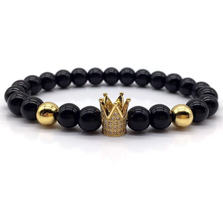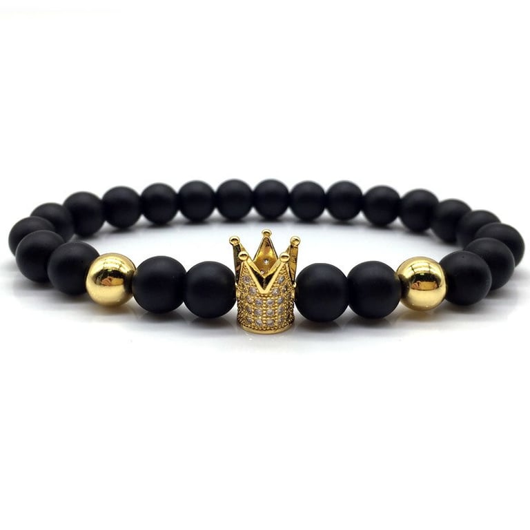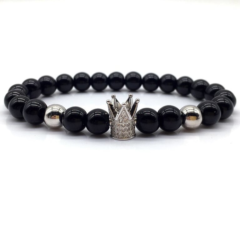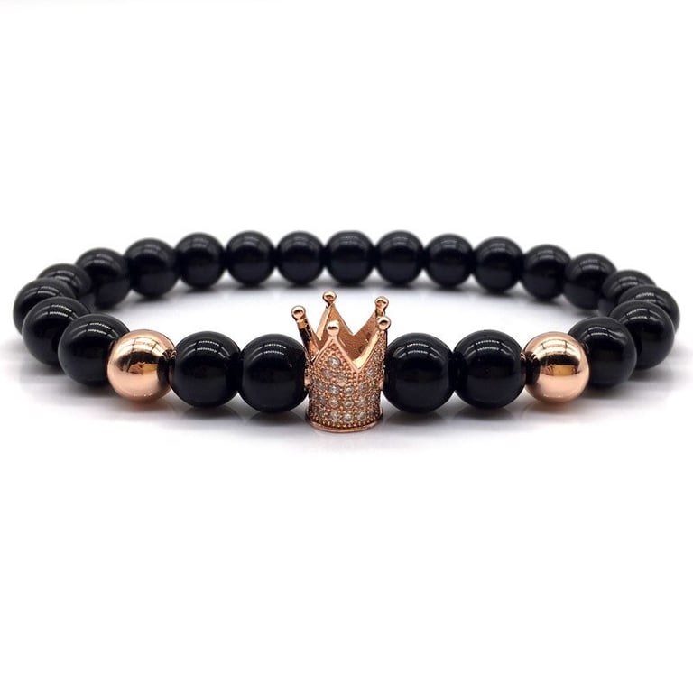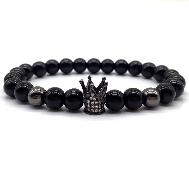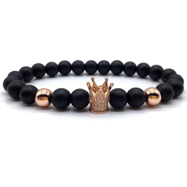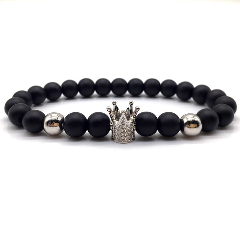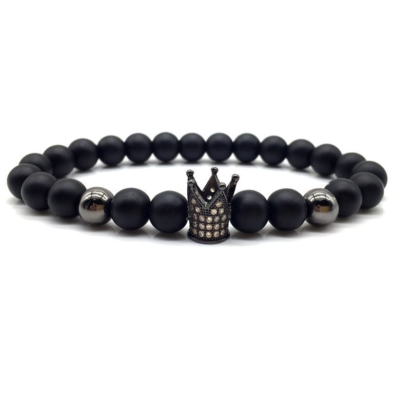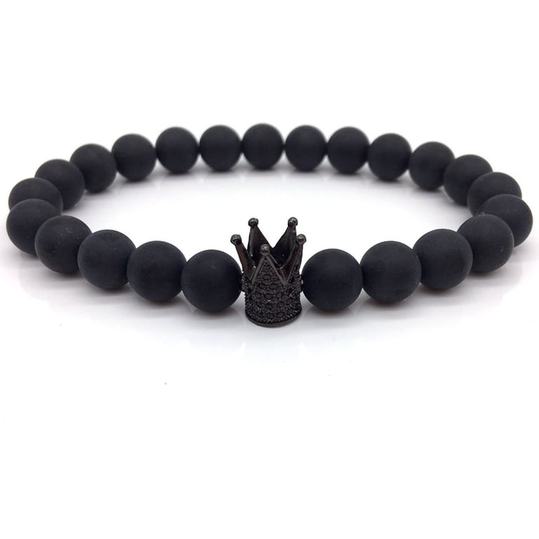 Unisex lava stone bracelet with a crown. Unisex lava stone bracelet with a crown.