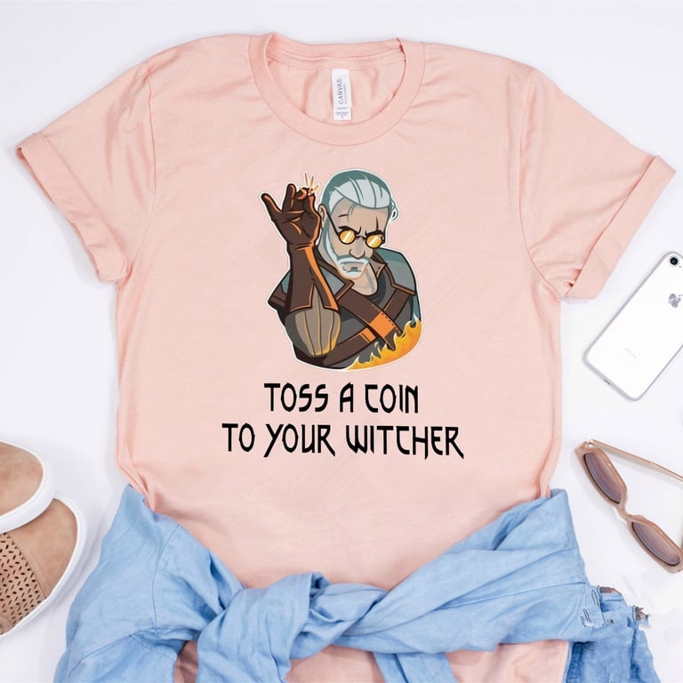 Unisex modern short-sleeve t-shirt Toss A Coin To Your Witcher.