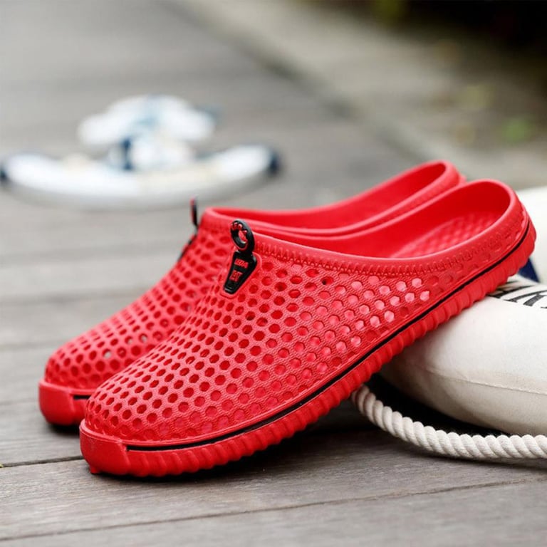 Rubber unisex slippers with a round closed toe and open heel. Grooved non-slip sole. Breathable. Available in multiple colour options.