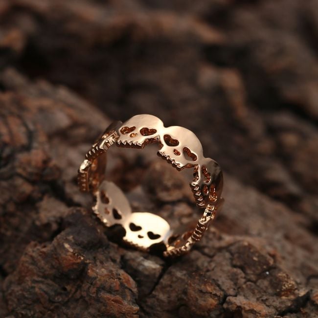 The ring with small skulls is an original combination of rock punk style.