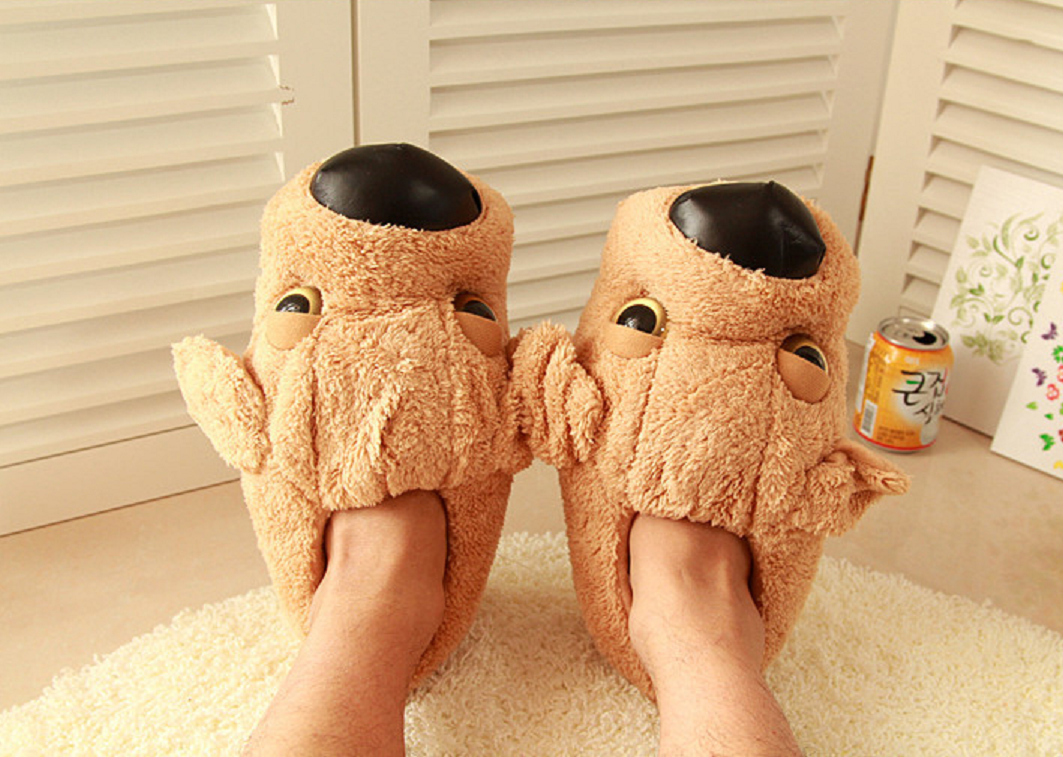 These dog-shaped slippers are very warm and of high quality.