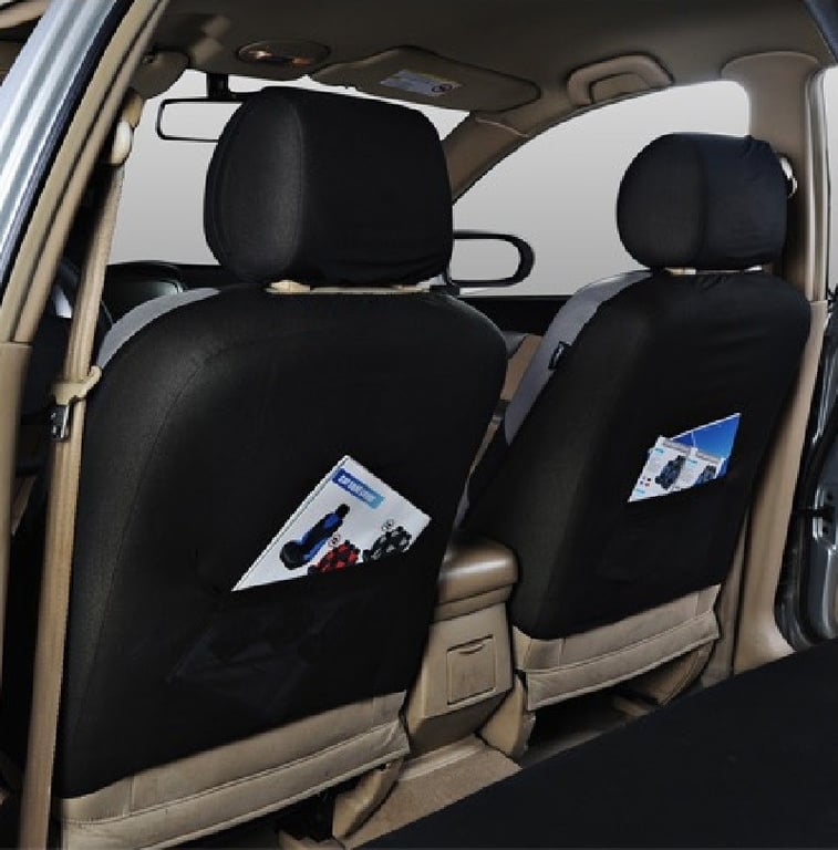 Package contents: 2x front seat covers, 1x rear bench cover, 1x rear backrest cover, 5x headrest covers