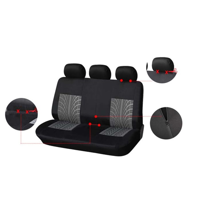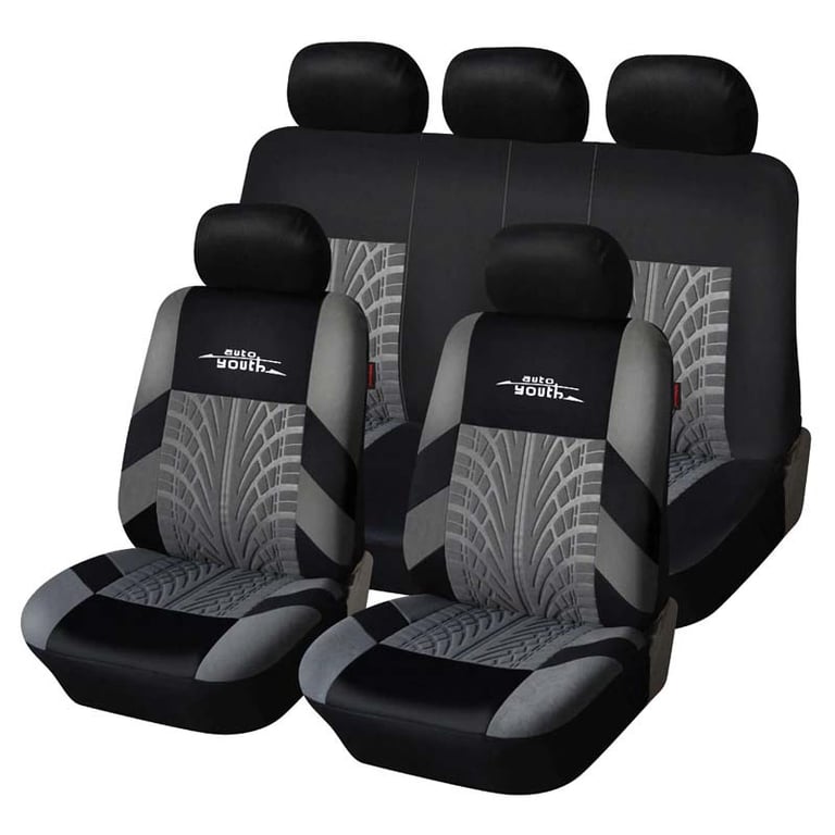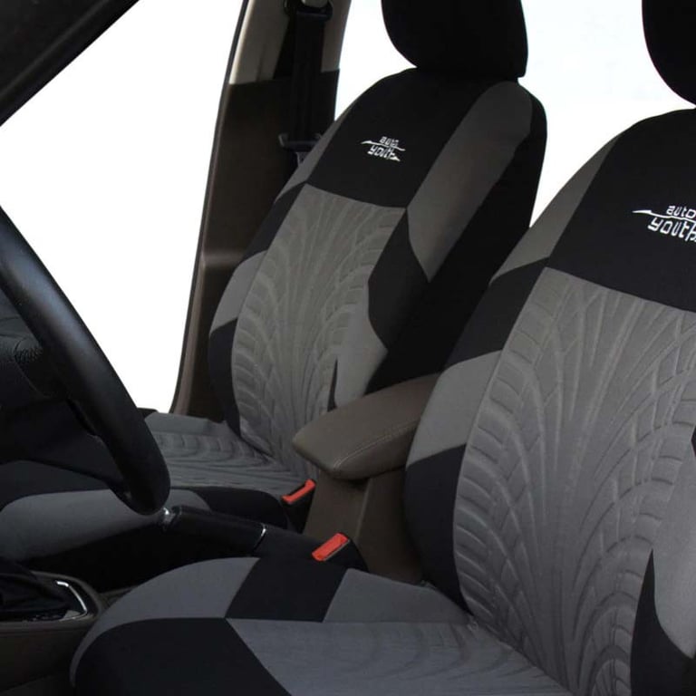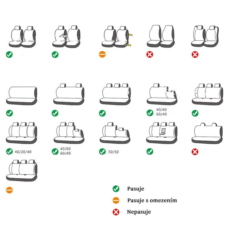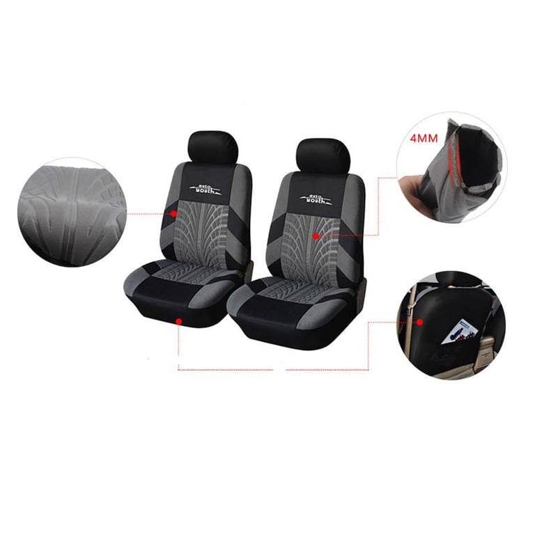 Universal car seat covers offered in four colour variations. The types of seats that the covers fit are shown in the photograph.