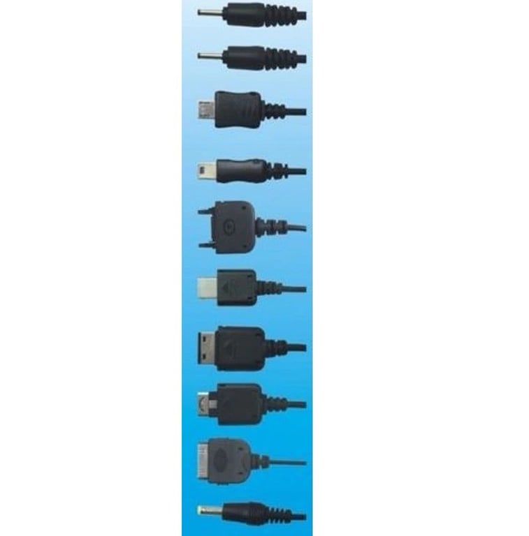 Suitable for: Nokia, Blackberry, Motorola (mini USB, micro USB), Sony Ericsson, Samsung, LG, Apple 30-pin, Kodak camera, Jack 3.5 mm, PSP