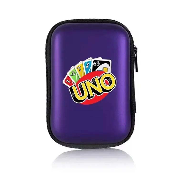 UNO Travel Case is a stylish case for the UNO card game that will protect your deck at home and on the go. Inside you’ll find a mesh pocket for better organisation, a sturdy zip, and a durable material that provides secure storage and easy carrying in a backpack or bag.