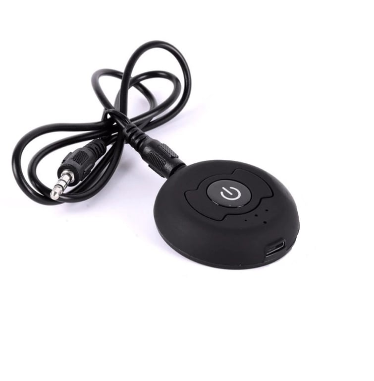 Package contents: 1x transmitter, 1x charging cable, 1x audio cable