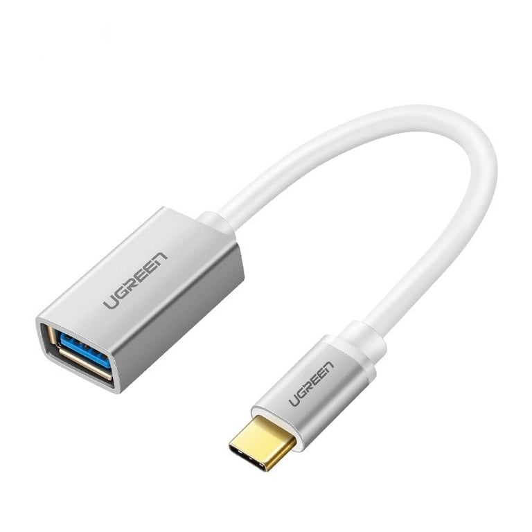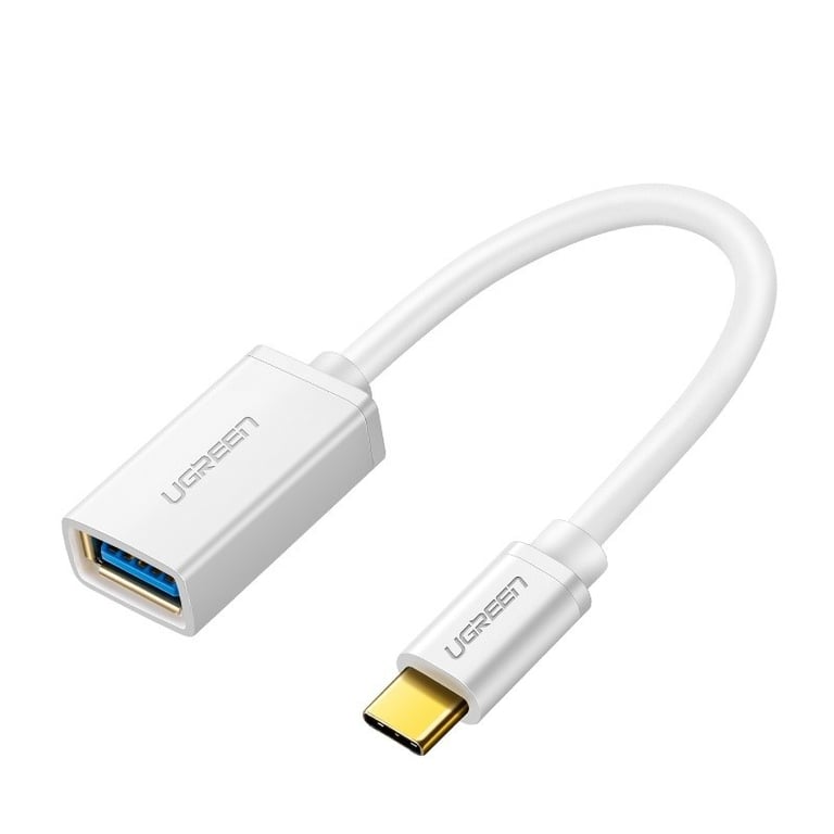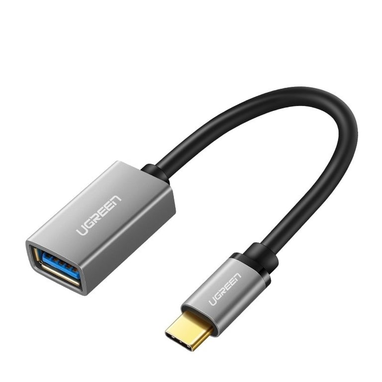 Allows data transfer using an adapter with USB-C (male) and USB (female) connectors.