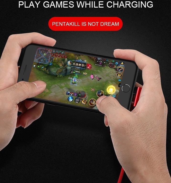 USB cable that allows you to charge while playing games on your mobile in landscape mode.
