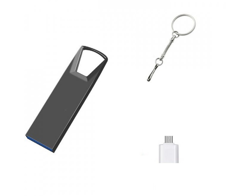 Package contents: 1x USB flash drive, 1x USB-C adapter, 1x keyring