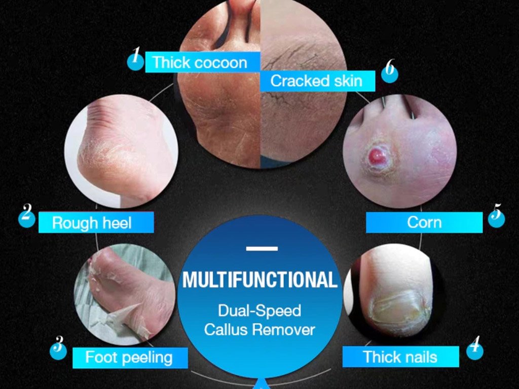 The electric USB home pedicure for heels allows you to quickly remove rough skin or calluses. It can also be used on other parts of the foot with thickened and dead skin.