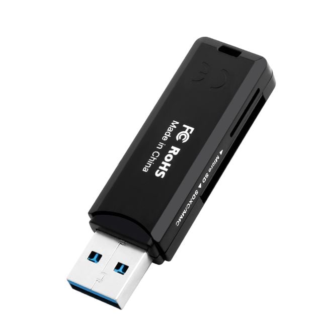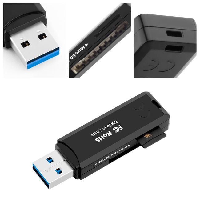 This USB card reader allows you to connect SD or micro SD cards to your laptop, PC, or smartphone.