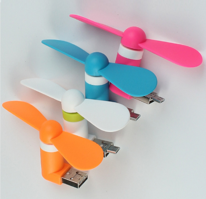 Fan with USB/Micro USB connector that can be connected to a phone, external battery, computer, and similar devices.