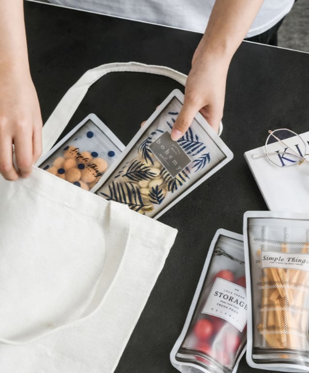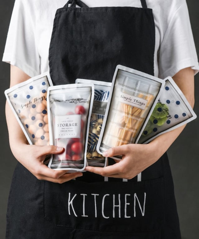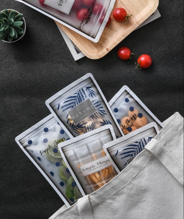 Resealable bags for fruits, vegetables, and various snacks. A great helper for school, work, and travel. The package contains 4 pieces.