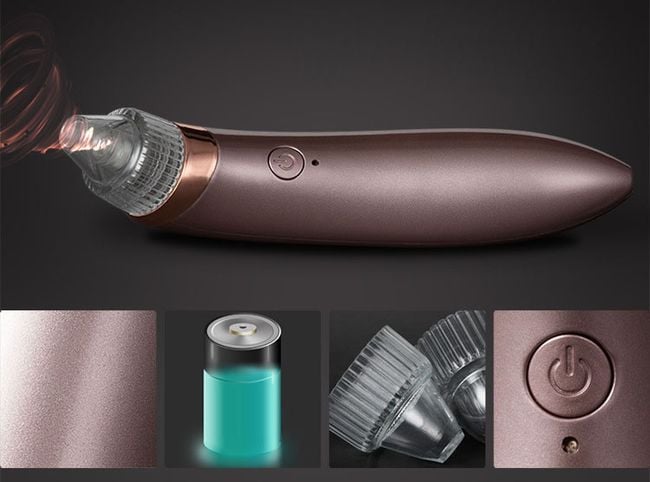 The vacuum skin cleaner provides gentle removal of clogged pores, blackheads, and acne. The package includes 4 different heads, allowing you to reach difficult areas. It is easily operated with a single button. The attachment with a microcrystalline tip can remove dead skin cells. The vacuum cleaner is charged using a USB cable. You must try this revolutionary skin cleaner too! In the images, you will find instructions on how to use the device and how to change the head.