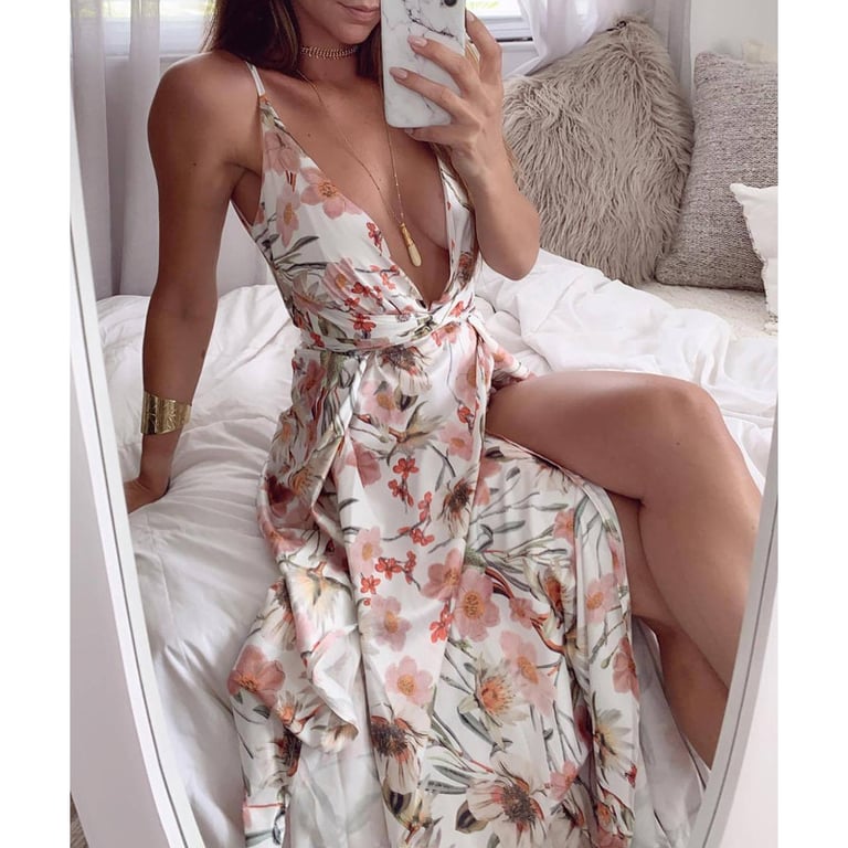 Stylish dress with an attractive neckline.