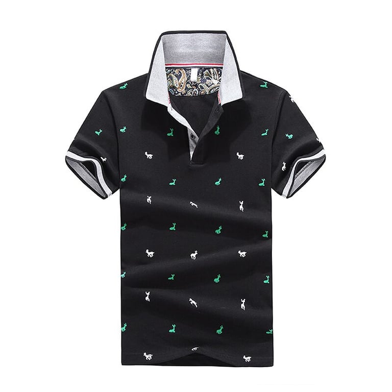 Men's polo shirt with a colourful pattern. The shirt has a fitted cut. Short sleeves. Collar with buttons. Available in multiple colour variants.