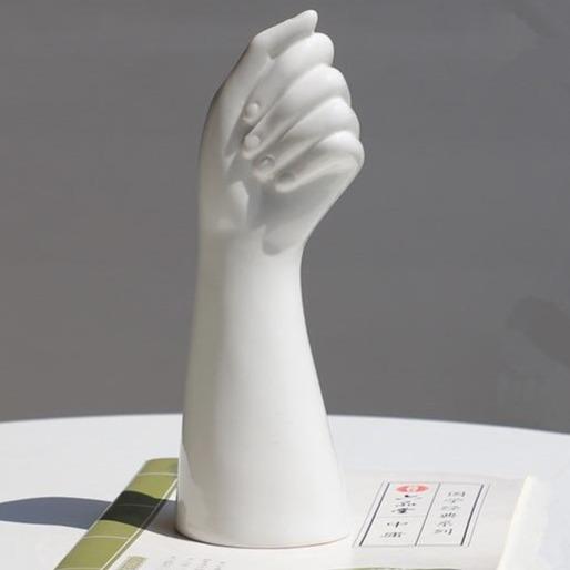 Hand-shaped vase in white colour.