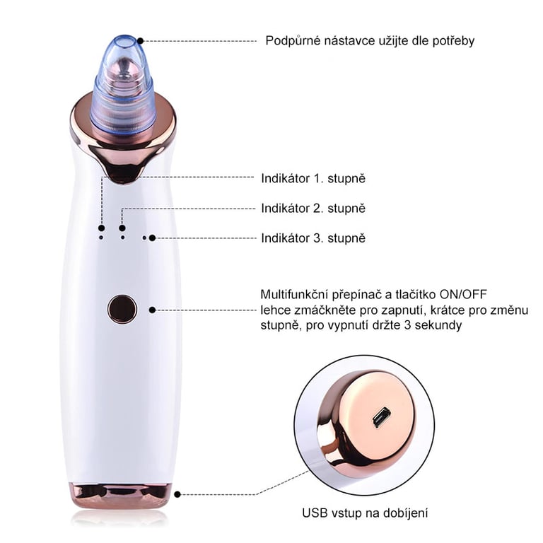 The practical Vermonto vacuum cleaner is special because it has 3 suction levels. The package includes 5 attachments for different parts of the face. For the best effect, try which attachment suits you best, and use and alternate it according to your needs.
