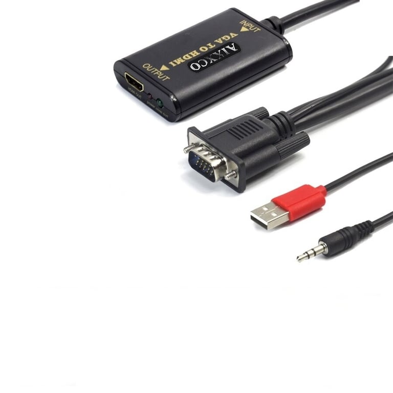 Connectors: USB (male), 3.5mm jack (male), VGA (male), HDMI output (female)