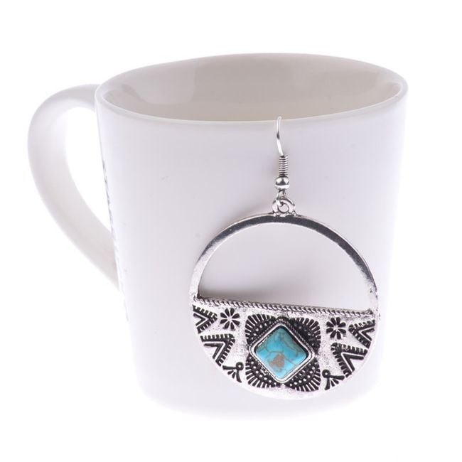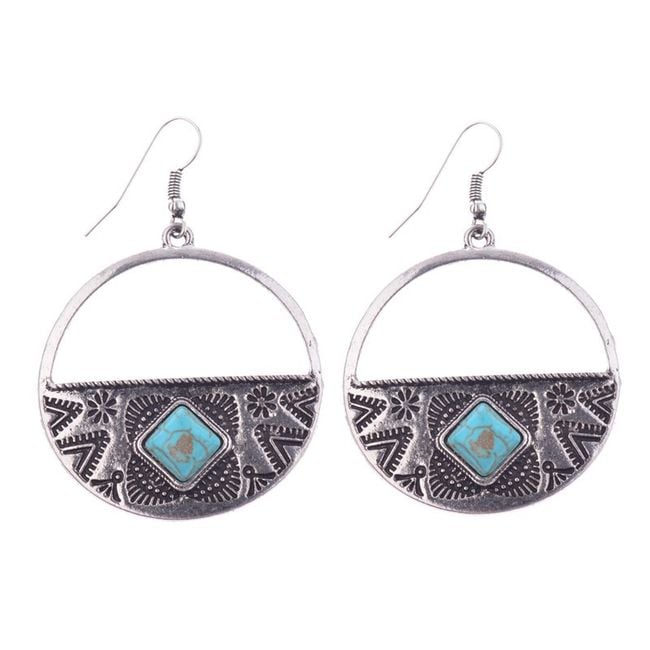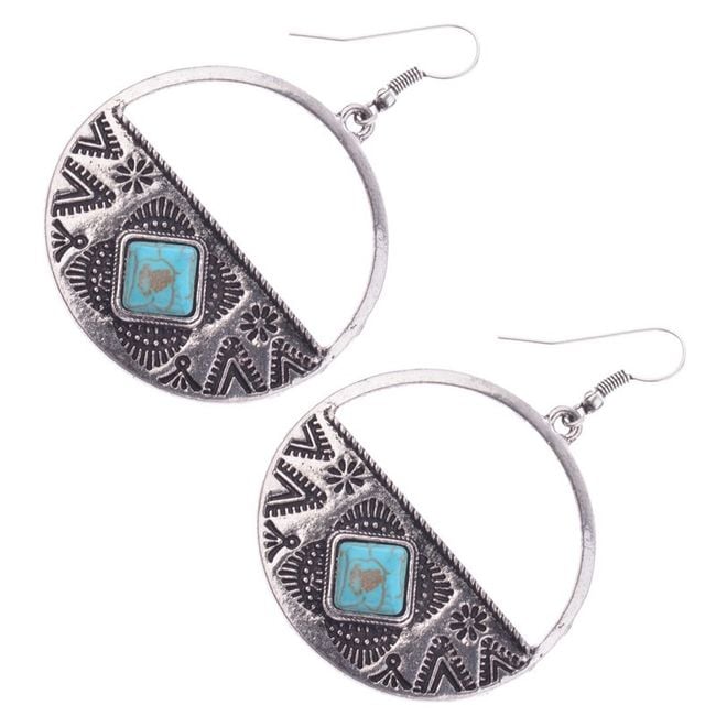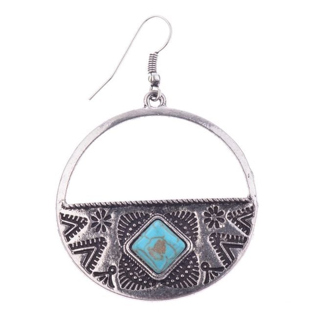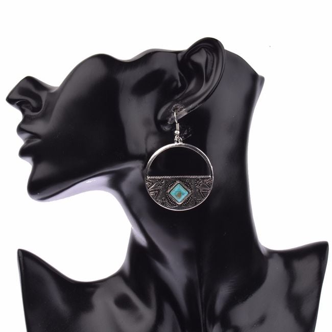Women's vintage boho style earrings with a blue turquoise stone.