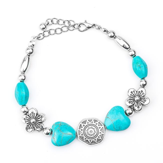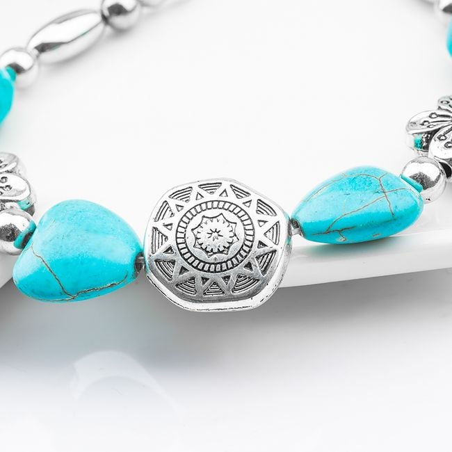 Women's vintage bracelet with costume jewellery components and blue stones.