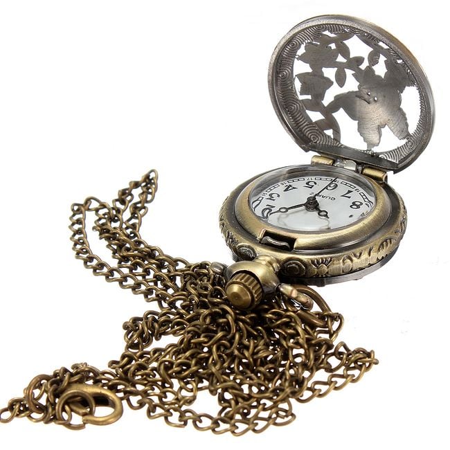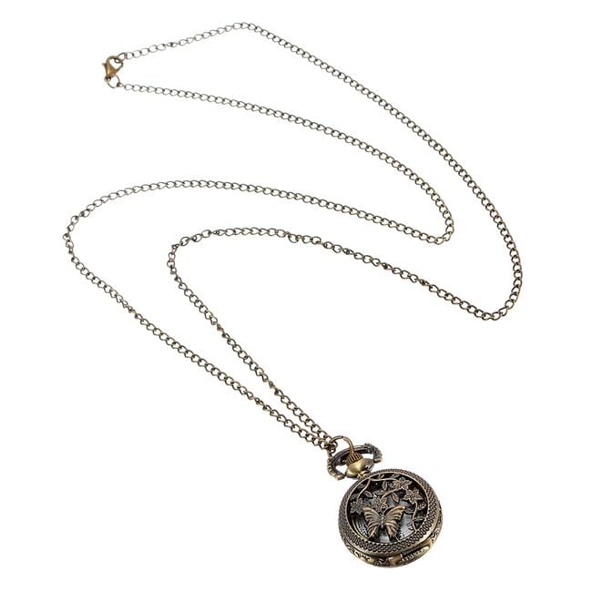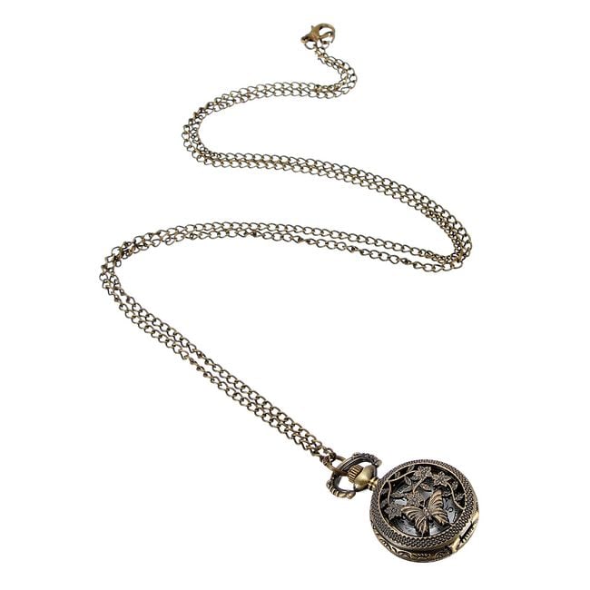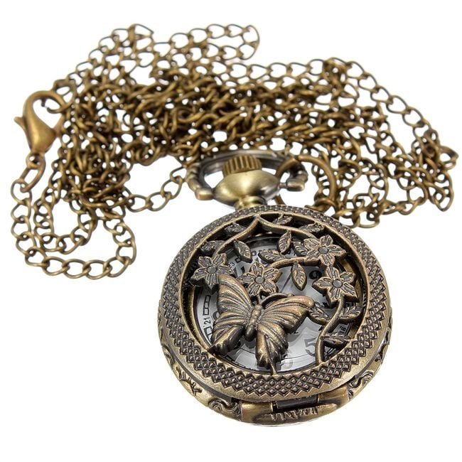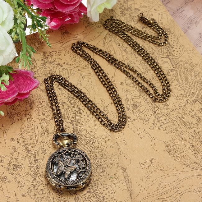A long chain necklace with a pendant that hides a watch beneath a butterfly and flower pattern is an amazing accessory for any occasion. If you are a fan of retro style, then this must not be missing from your collection of fashion accessories.