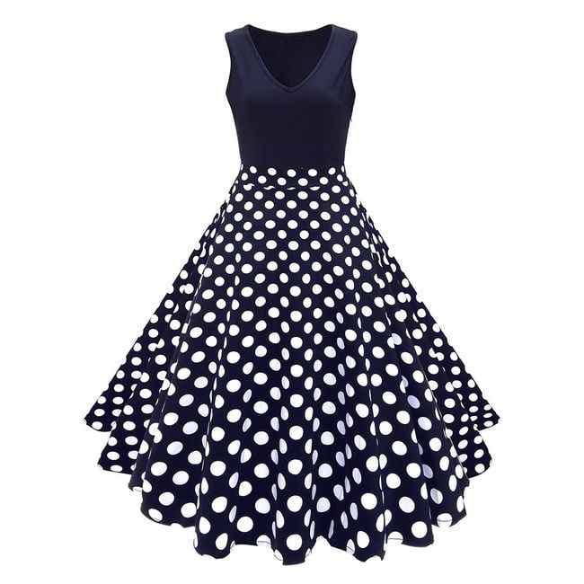 Women's vintage dress with a wide skirt adorned with floral patterns.