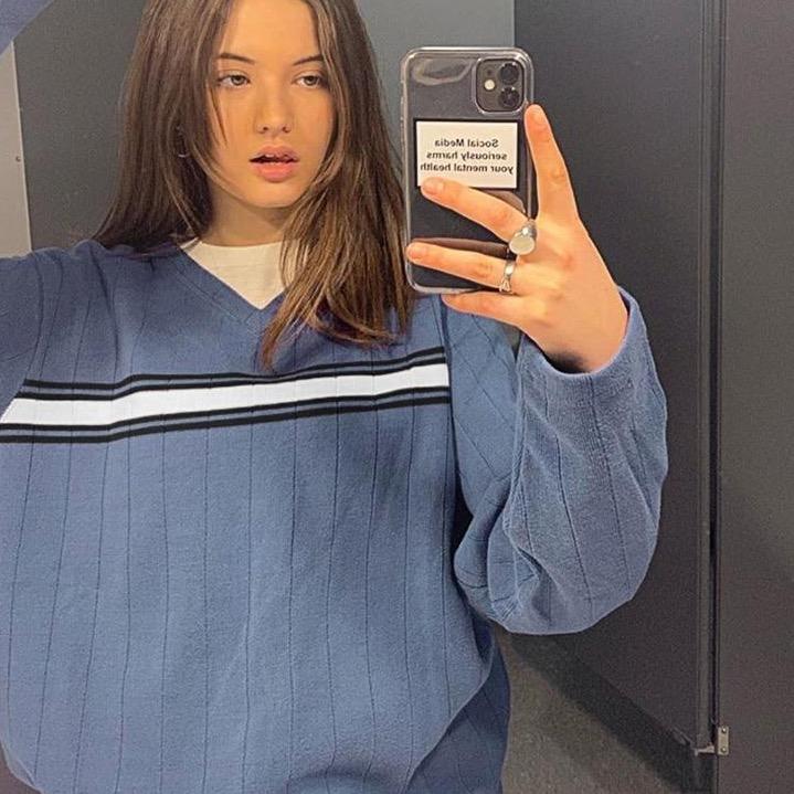 Vintage women's sweater available in two colours. The sweater is made of viscose, polyester, and nylon.