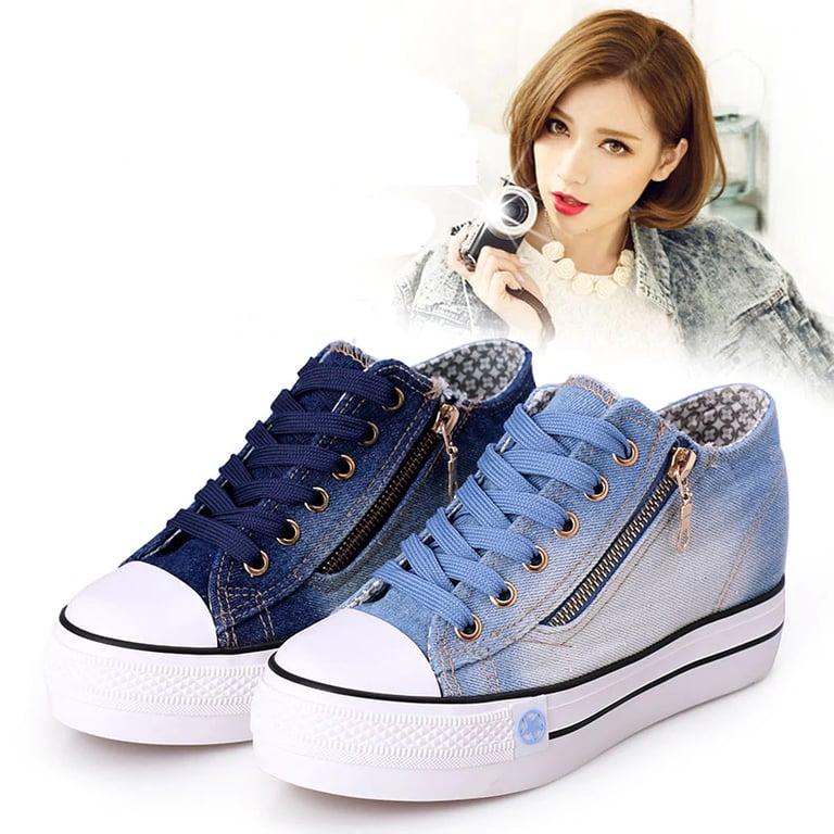 You will love these denim trainers. The trainers lace up and feature a decorative zip.