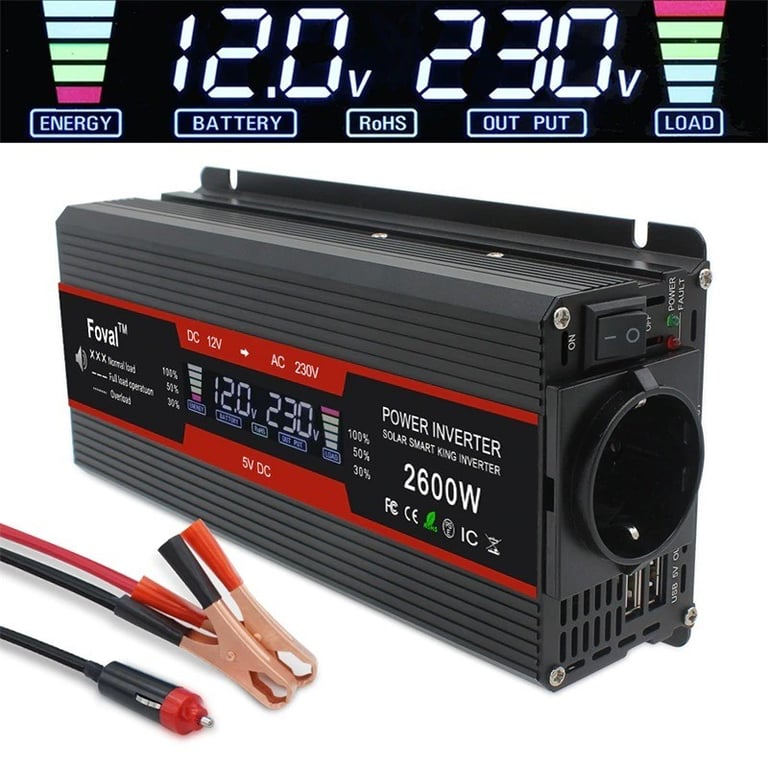 Package Contents: 1x converter, 1x cable to car battery with clamps, 2x fuse, 1x user manual