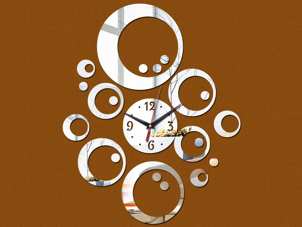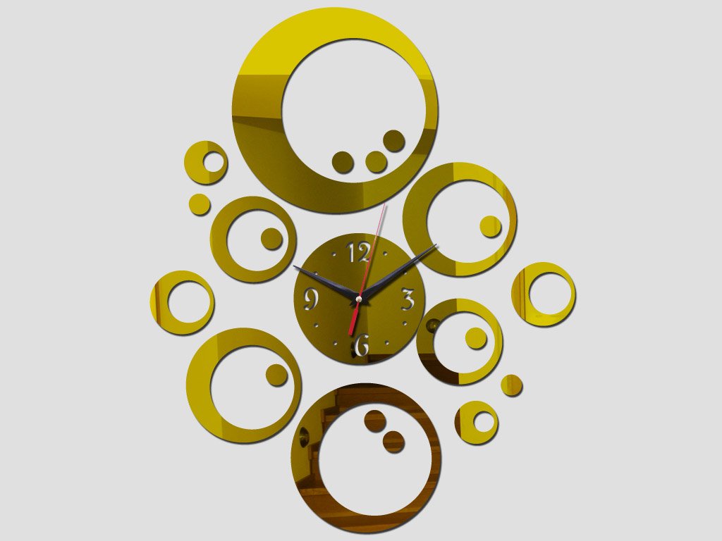 These wall clocks in a circular design can be hung on the wall and complemented with adhesive rings to create your desired shape. They will be an elegant decoration for the interior of your living room, kitchen, or bedroom.