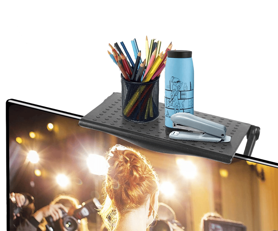 A practical shelf designed to fit over the edge of your television. It creates new space for you to place additional devices. Store your Wi-Fi antenna, set-top box, remote control, or other small items conveniently. Installation without drilling or screwing.