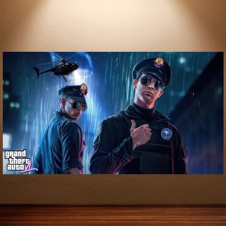 Wall poster for Grand Theft Auto VI.