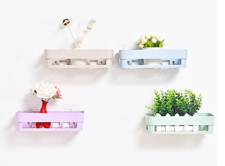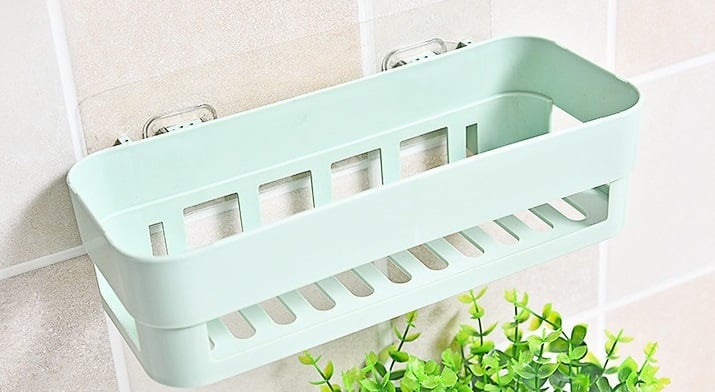 We have the solution for you! These bathroom shelves can be attached to the wall using suction cups, onto which you simply place the shelves.