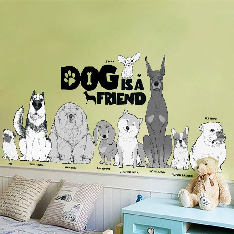 Self-adhesive wall decoration. A sign with dogs of various breeds.
