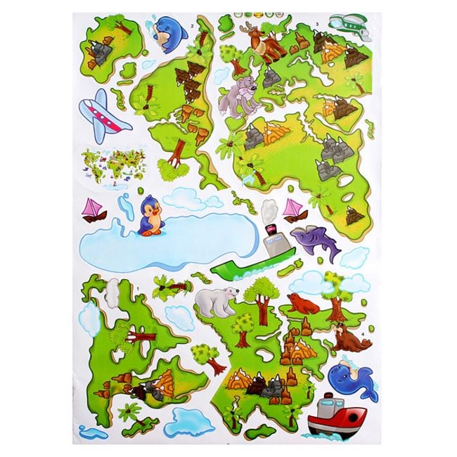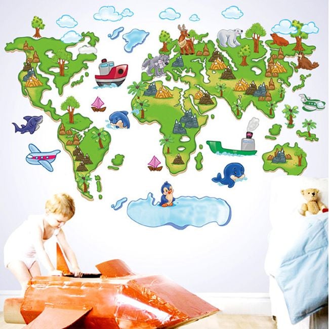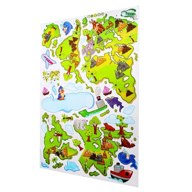Tired of blank white walls? Then get this great wall sticker in the form of a world map for children. It can be applied to smooth surfaces such as walls, doors, windows, etc. Ideal for a child's room.