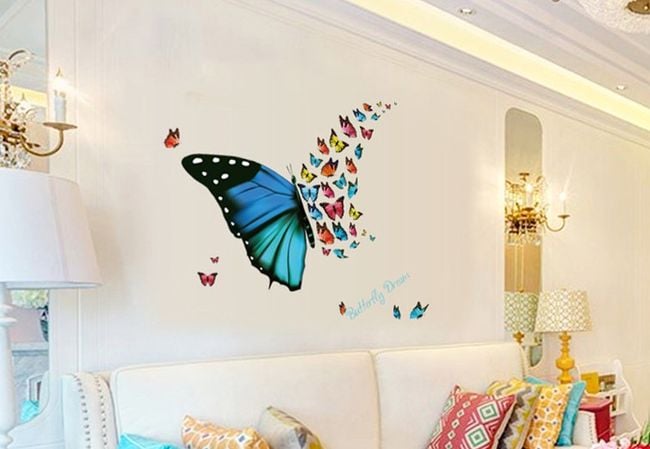 Beautify your home with a colourful sticker. The large butterfly has one of its wings made up of numerous smaller colourful butterflies.