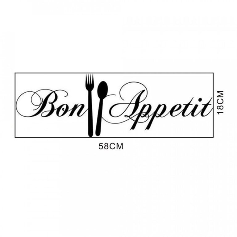 Decorative wall sticker with the inscription “Bon Appetit” in black.