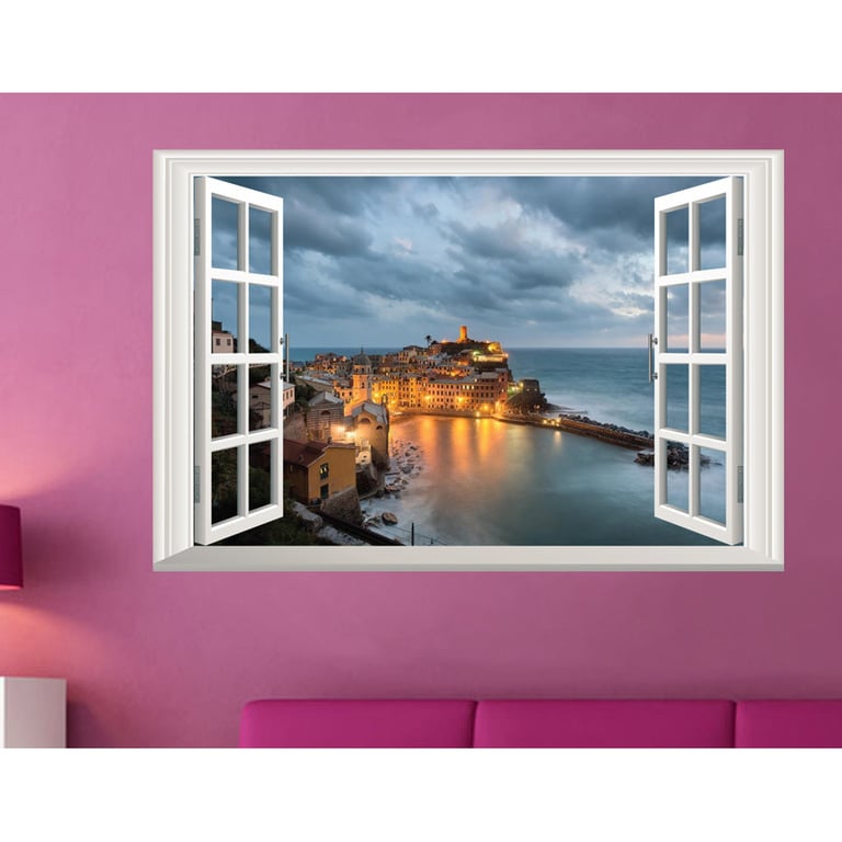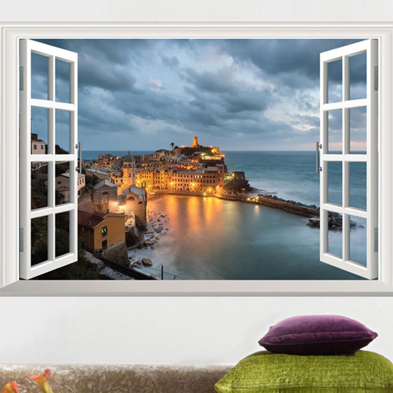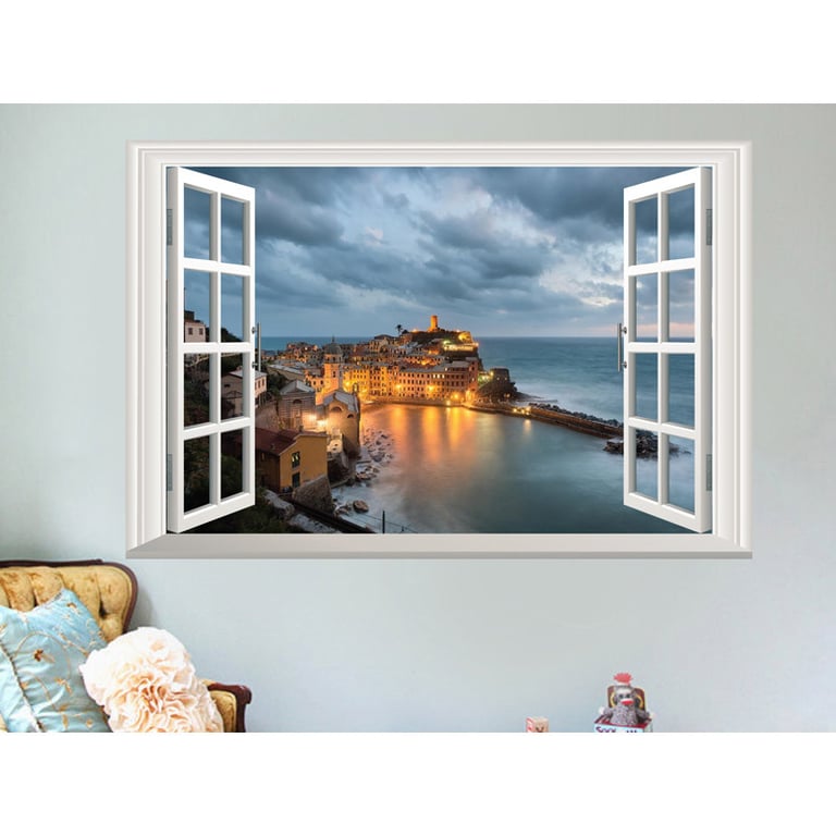 Get a beautiful view of the sea. Self-adhesive wall decoration with a view from the window.