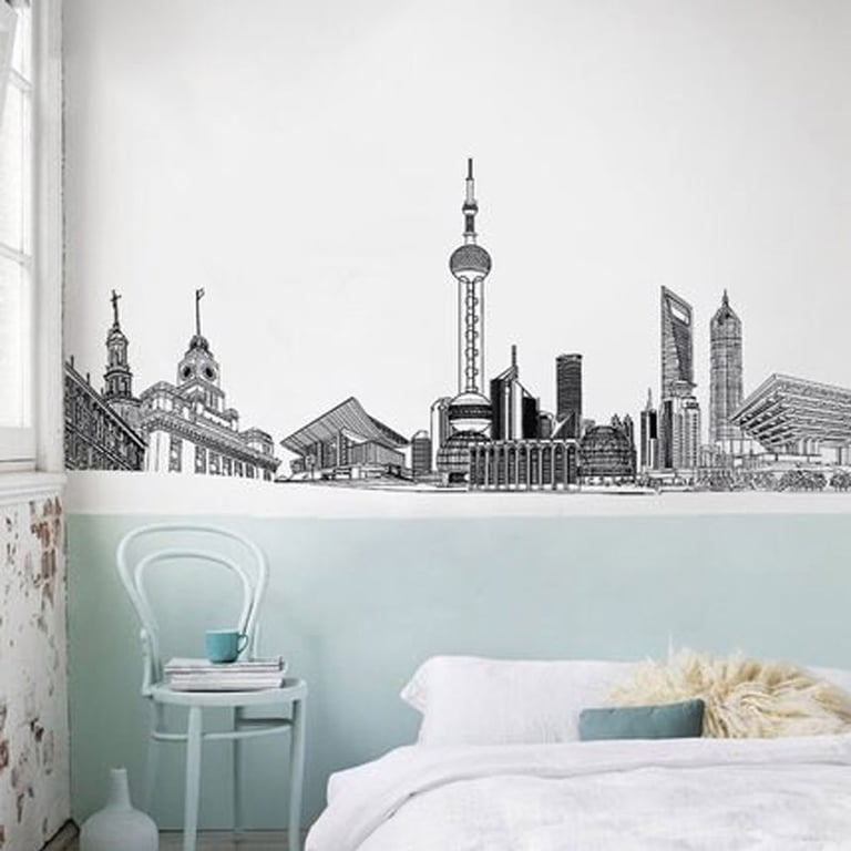 Decorative wall sticker featuring a skyscraper design.