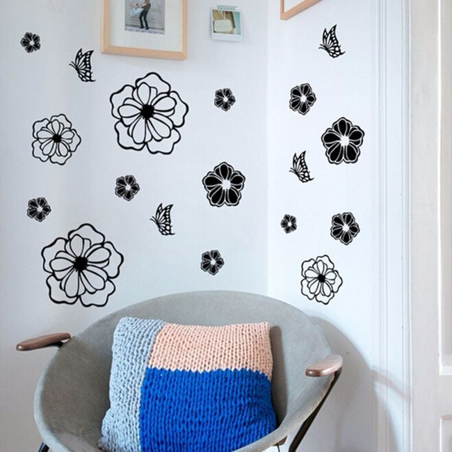 Wall sticker in the shape of flowers and butterflies.