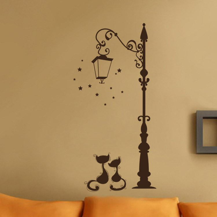 Self-adhesive wall decoration. Night lamp and sitting cats.