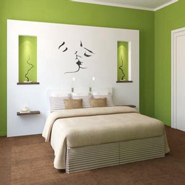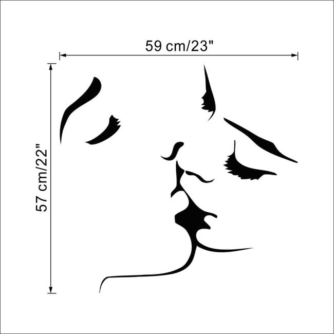 This wall sticker is ideal for a bedroom or living room. The sticker depicts a kissing couple. Application is very simple and quick. Apply the sticker to a smooth and clean wall.
