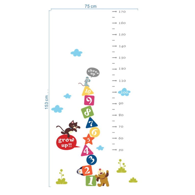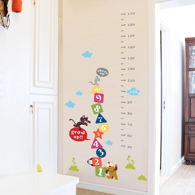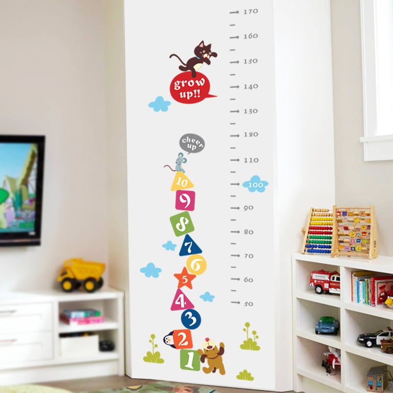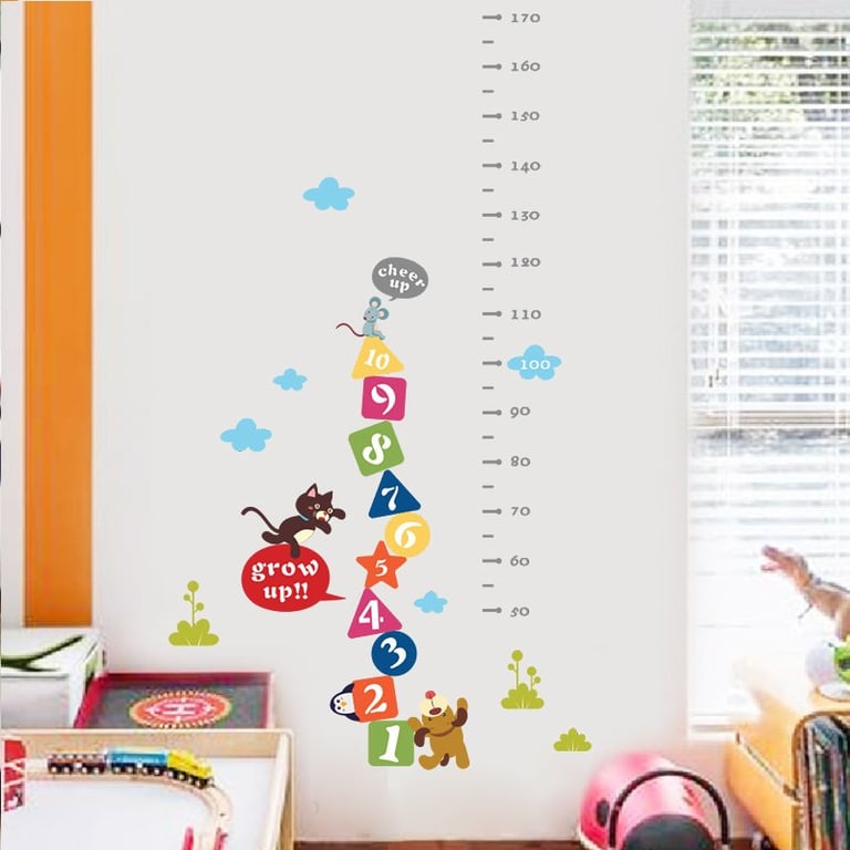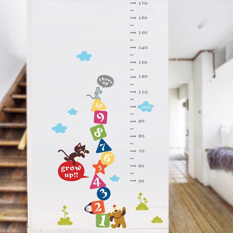 Decorative wall sticker. Children's height chart with numbers and animals.