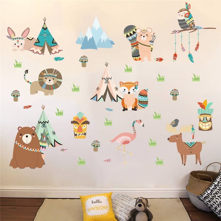 Decorative wall sticker. Accessory for a children's room. Animal motifs as Indians.