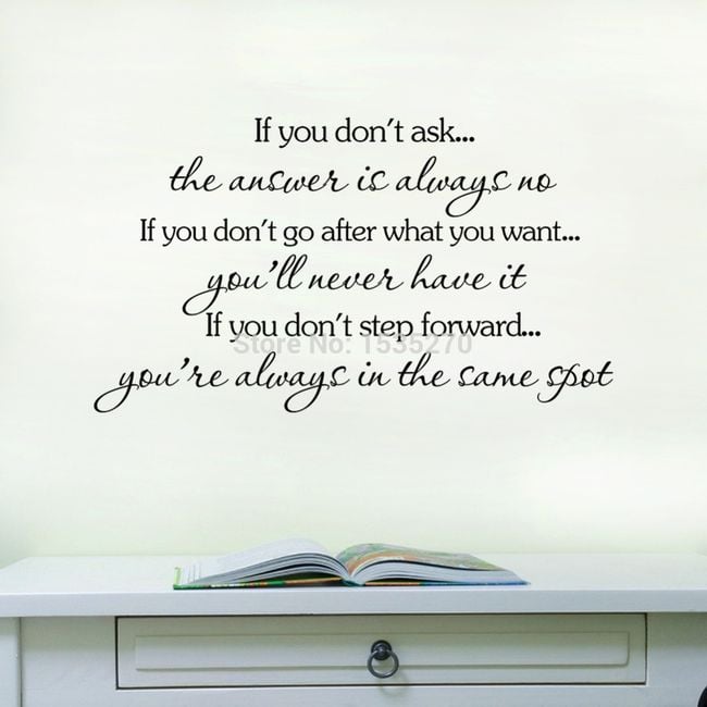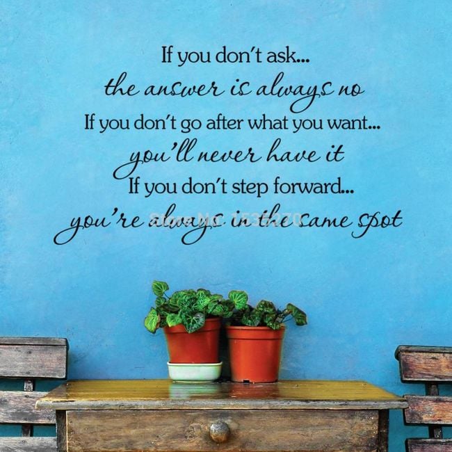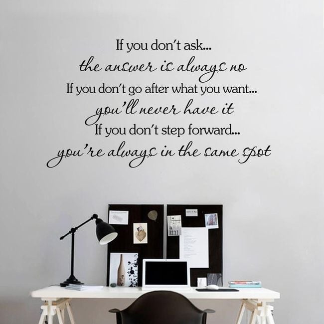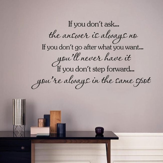 A wall sticker with a quote can become a great decoration for your flat. Apply the sticker to a smooth and clean wall.
